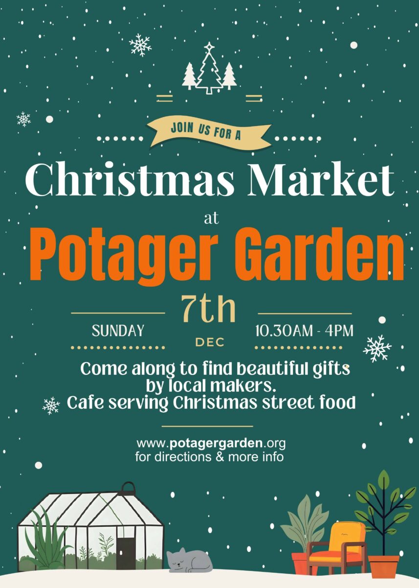 CHRISTMAS FAIR – POTAGER GARDEN – SUN 7 DEC 2025 It’s that time of year again! Excited to be hosting the Christmas Market on Sunday 7 December from 10:30 – 16:00 with 30 brilliantly talented local artists and makers from Cornwall. The café will be serving Christmassy street food and hot drinks and the place […]