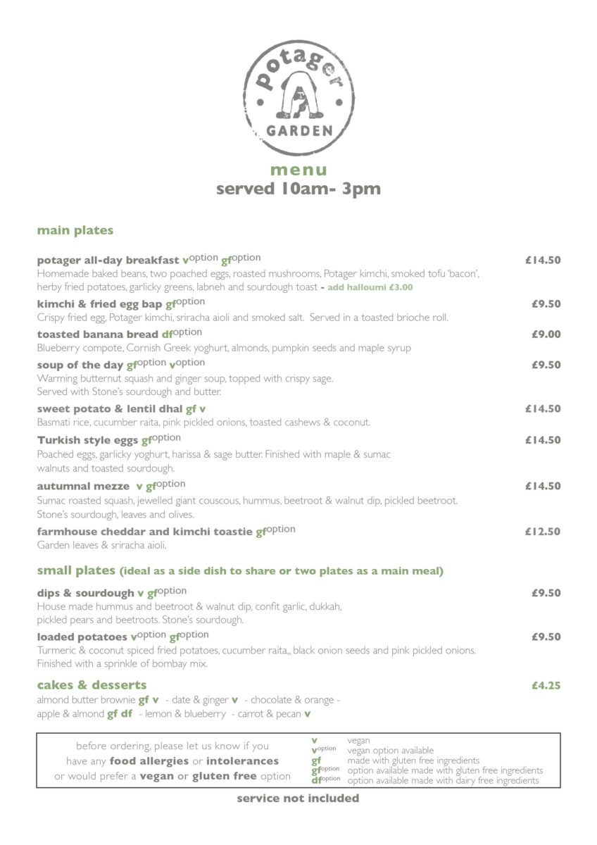 Our fantastic kitchen team is bringing great new flavours to Potager in a variety of inventive vegetarian dishes. The menu changes all the time according to what’s in season or has just come out of the garden – if you’d like to know more about our ethos, take a look here. And if you’d like to know what’s on the menu this week, give us a call!