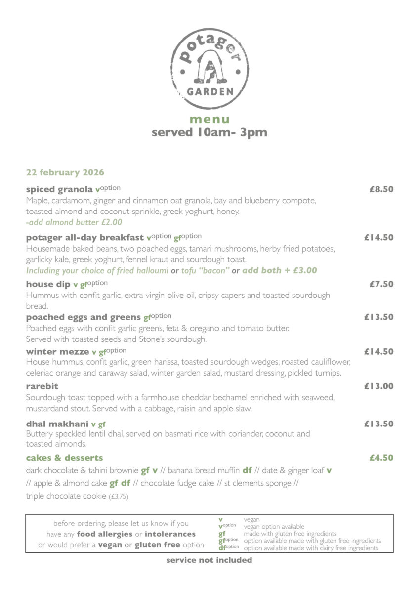 We serve food between 10am and 3pm. You can get great cake and coffee all day! To be sure of a table, please book below.